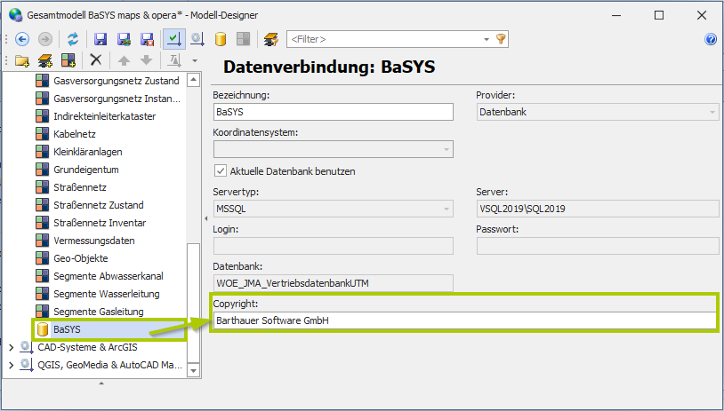 Die Eingabe der Copyright-Texte erfolgt im Modelldesigner für jede einzelne DatenverbindungModelldesigner für jede einzelne Datenverbindung.