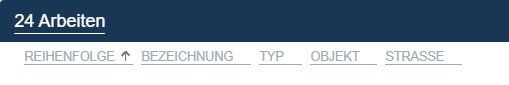 Die Arbeiten können per Klick auf ein Datenfeld in der Sortierleiste auf- bzw. absteigend sortiert werden.