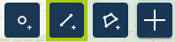 Daraufhin wird ein Flyoutmenü mit weiteren Funktionen aufgeklappt. Per Mausklick wird die jeweilige Funktion (Punkt, Linie, Fläche) ausgewählt, die aktivierte Funktion wird grün hinterlegt und mit einem erneuten Mausklick wieder deaktiviert. Im Grafikfenster werden die Koordinaten des neuen Objekts per Maus eingegeben, anschließend wird der zu erstellende Objekttyp und die Geometriekennung ausgewählt, eine neue Bezeichnung eingegeben und das neue Objekt gespeichert.