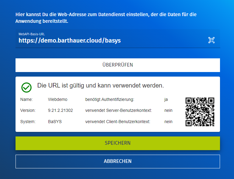 In die ZeileWebAPI-Basis-URL wird die Web-Adresse zum Datendienst eingetragen.