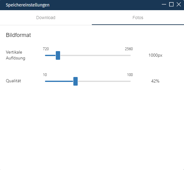 Über einen Schieberegler wird die vertikale Auflösung der Fotos festgelegt.