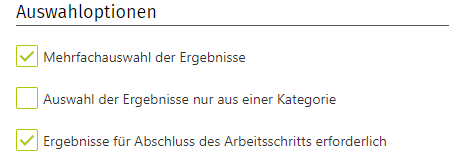 Der Arbeitsschritt kann nur dann als erledigt gesetzt werden, wenn mindestens ein Ergebnis ausgewählt wurde |