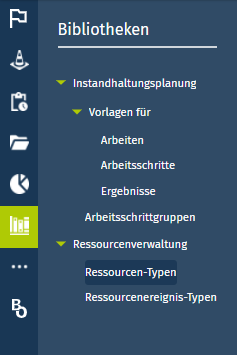 In den Bibliotheken werden alle Vorlagen für die Ressourcenverwaltung und Instandhaltungplanung verwaltet.