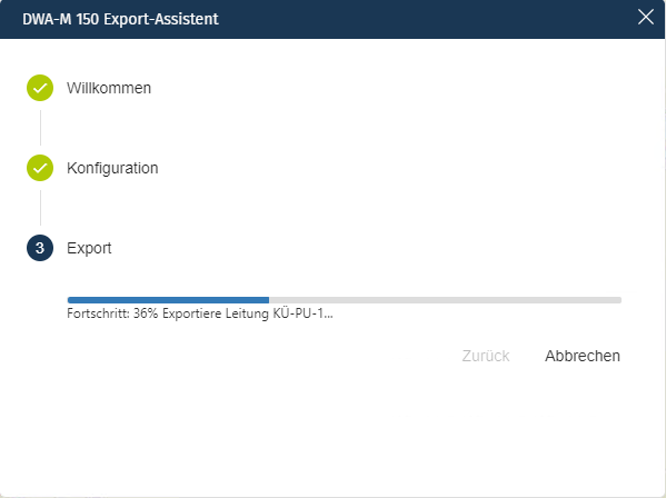 Der Assistent zum Exportieren von Zustandsdatenerfassungen des sichtbaren Kartenausschnitts in das DWA-M150-Format wird im Menü gestartet.