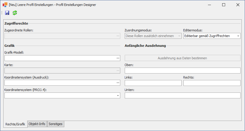 Das Formular Profil-Einstellungen Designer enthält mehrere Register.