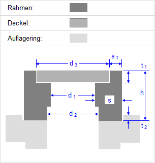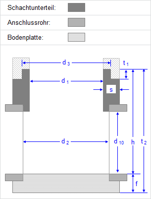 Optionalwert für eine abweichende Wandstärke unten. Wandstärke für die Muffe des Schachtrahmens. |