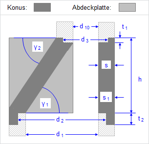 Innenlänge oben des rechteckigen Schachtteils Konus oder Übergangsplatte (Übergangsring). Maximale Innenbreite Anschlussrohr Schachtunterteil. Standardwert ist d10. |